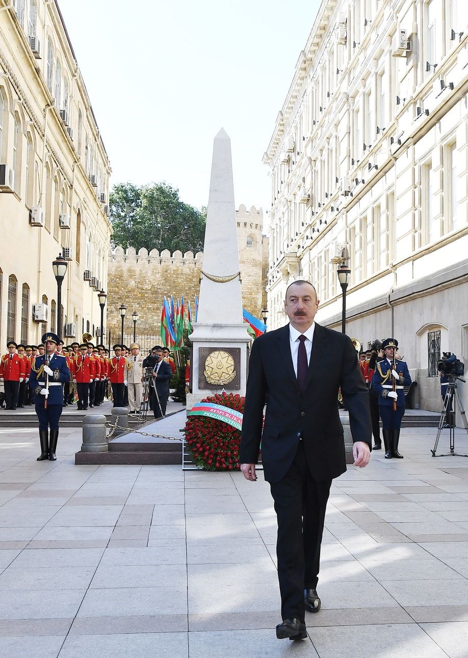 President of Azerbaijan Ilham Aliyev attended to the ceremony held in front of the Republic Monument. Aliyev laid a wreath to the monument during the ceremony which started with Azerbaijan’s national anthem. Within the framework of the celebration, several political parties and non-governmental organizations made a march in Baku. The march started in Icherisheher which is an old city of Azerbaijan and continued to the Republic Monument.